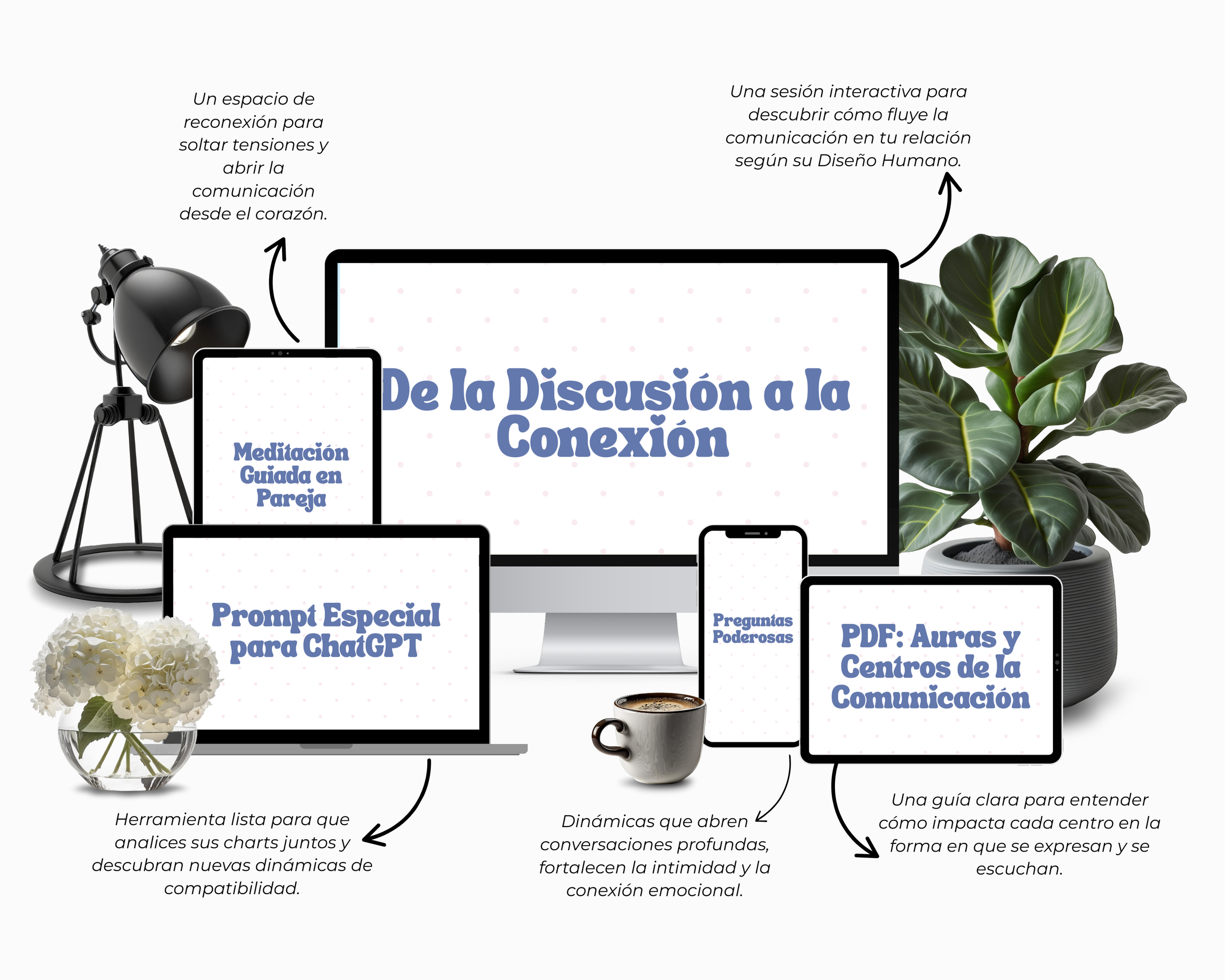 En este taller en vivo de 60 minutos, te guiaré paso a paso para obtener tu carta de Diseño Humano y la de tu pareja, con un enfoque claro y práctico en cómo mejorar su comunicación.